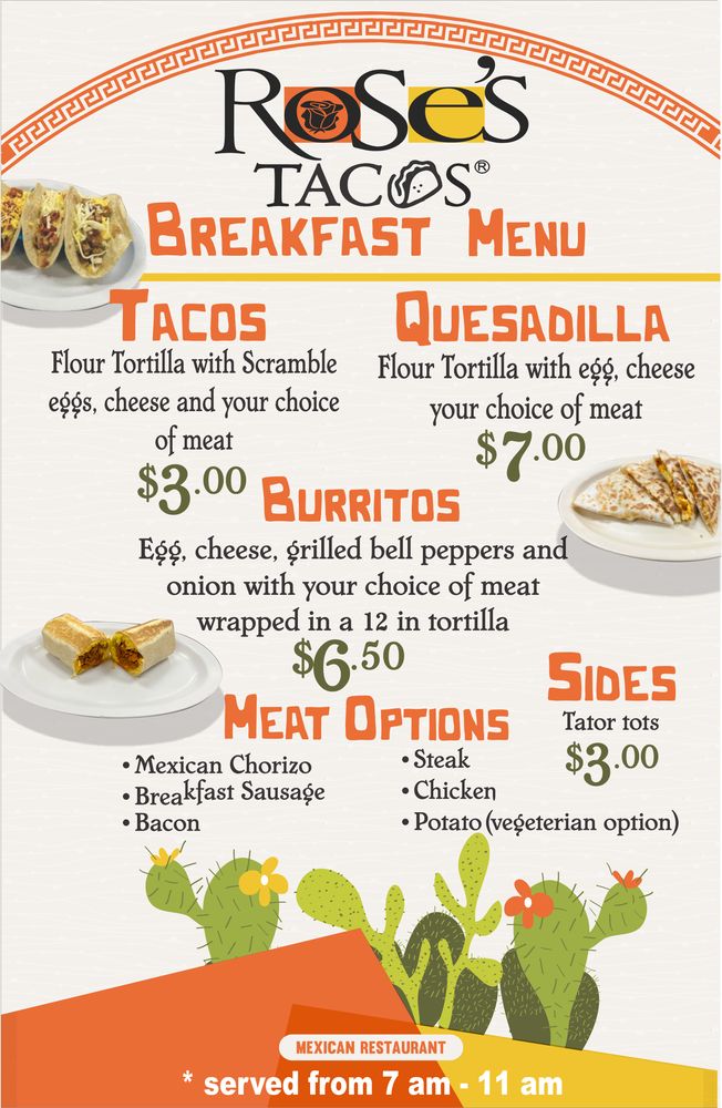 Rose's Tacos - Peachtree City Menu